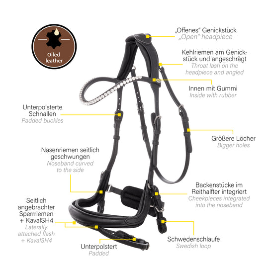 Kavalkade ogłowie z olejowanej skóry "EveryDay", czarne 24h