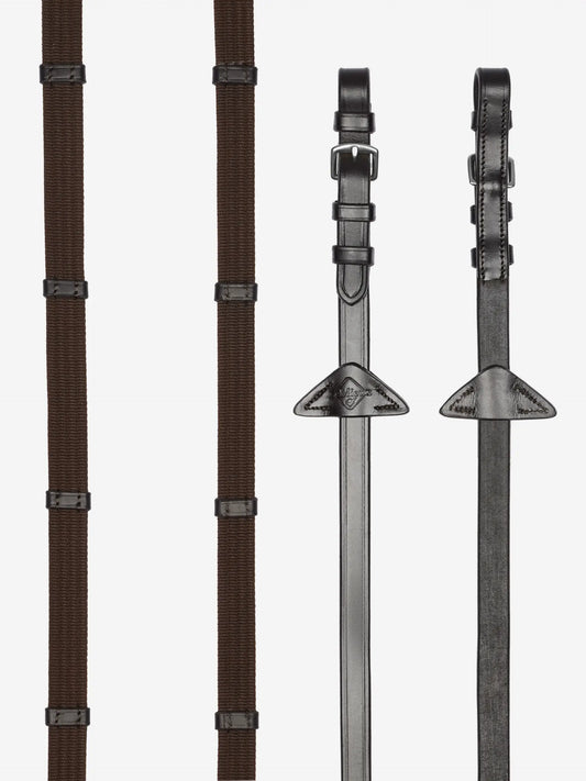 LeMieux wodze skórzano-gumowe "Half-Lined", ciemny brąz/srebrny