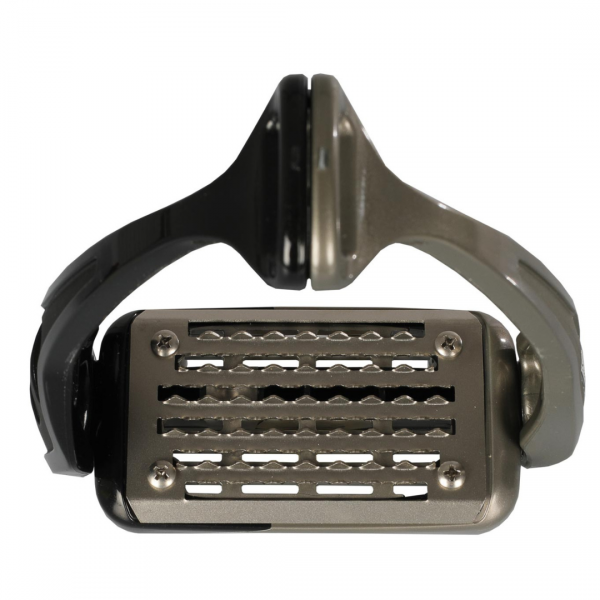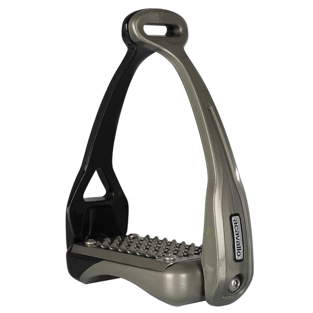Bardzo trwała, szeroka, zamocowana na stałe stopka, wykonana ze stali nierdzewnej, gwarantuje idealne ułożenie stopy w strzemieniu i odciążenie bioder, kolan, łydek oraz wszystkich stawów stopy.