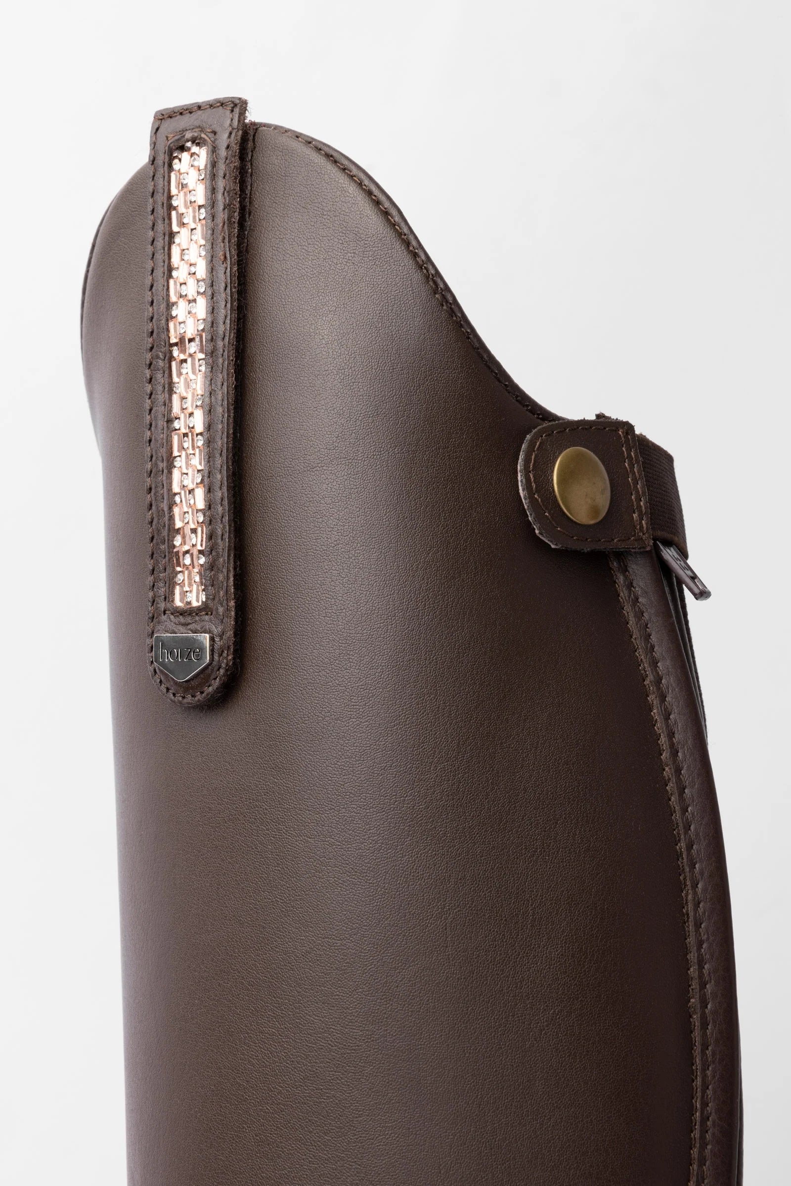 Skórzane paski zapinane na zatrzask na górze i dole suwaka gwarantują skuteczne zapięcie oficerek.