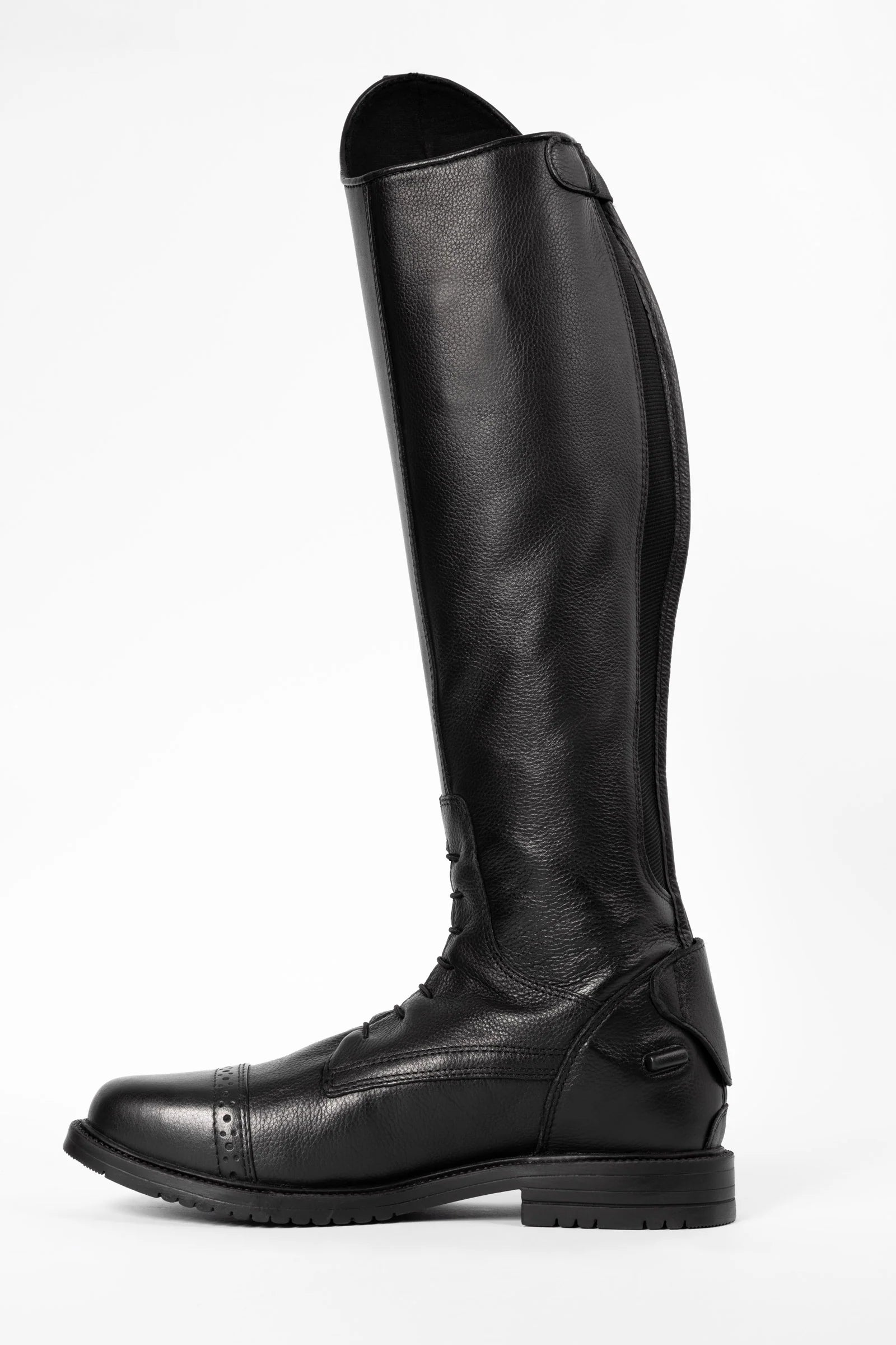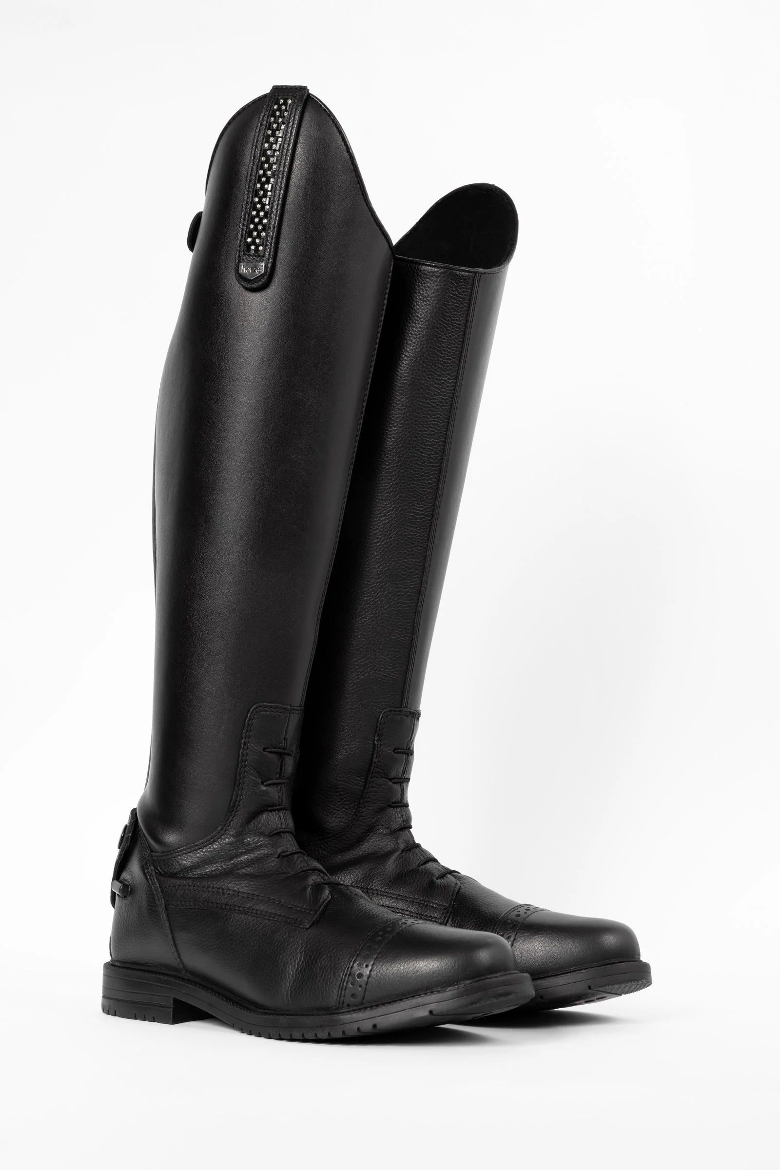 Stopa ozdobiona jest paskiem z dziurkami, elastycznymi, zamocowanymi na stałe sznurowadłami i posiada przydatną podpórkę na ostrogę.