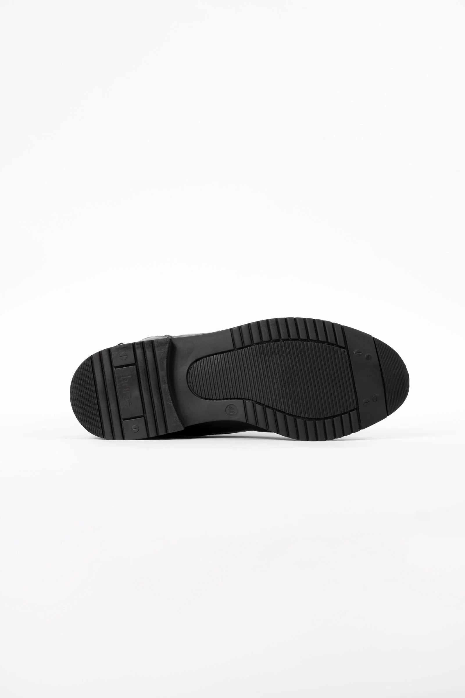 Gładka skóra po zewnętrznej stronie i tłoczona skóra po wewnętrznej stronie łączą się tworząc wysoce profesjonalne oficerki.