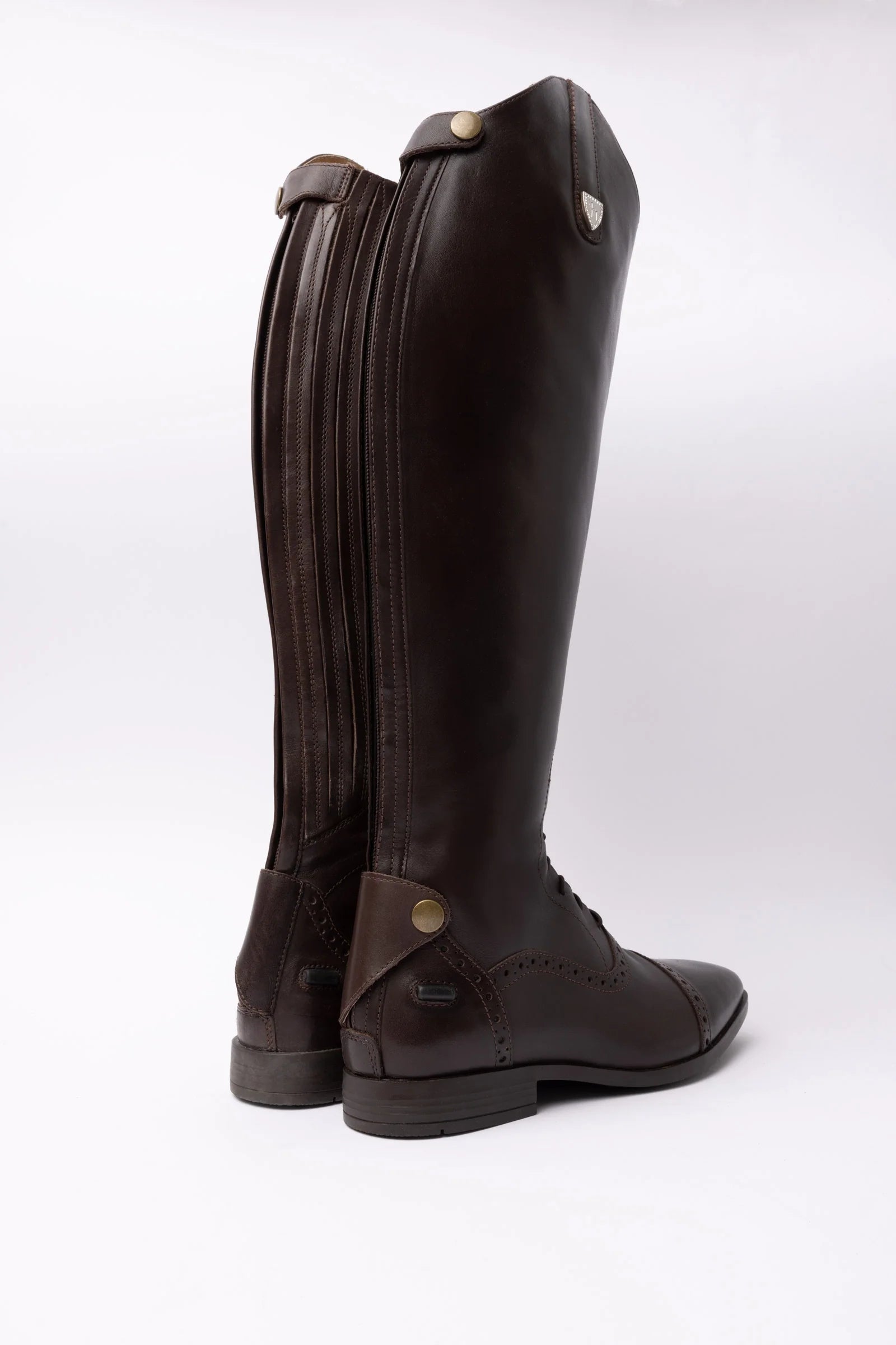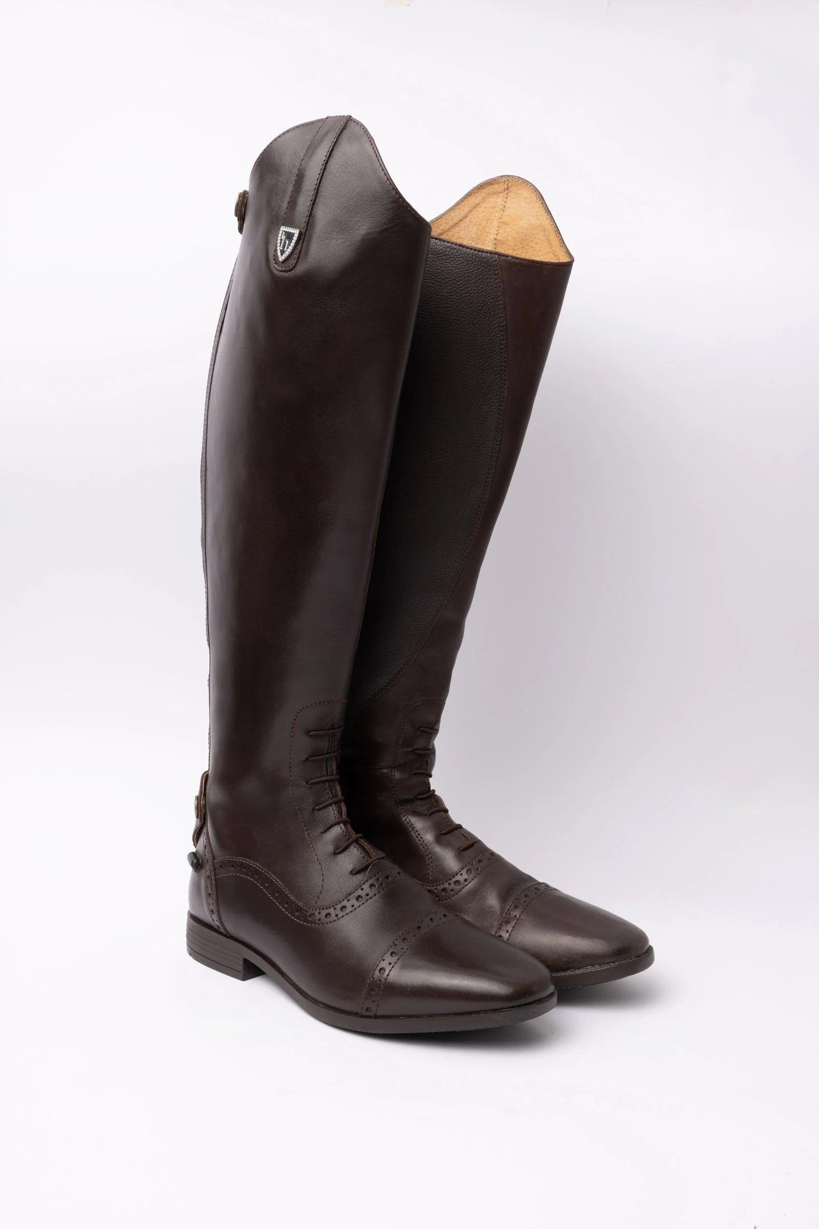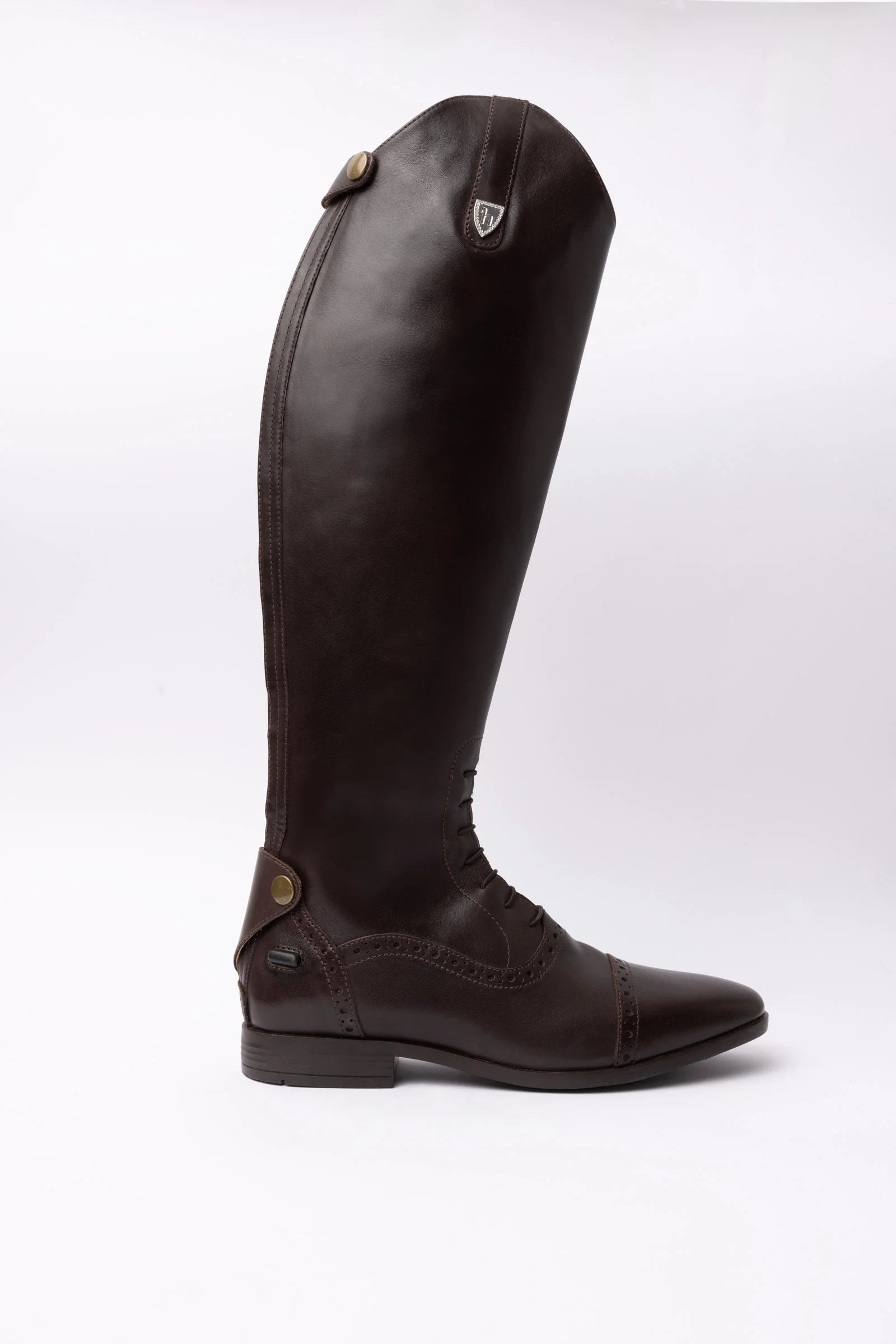 Oficerki mają piękne, dziurkowane zdobienia i kryształkowe logo Horze na górze.