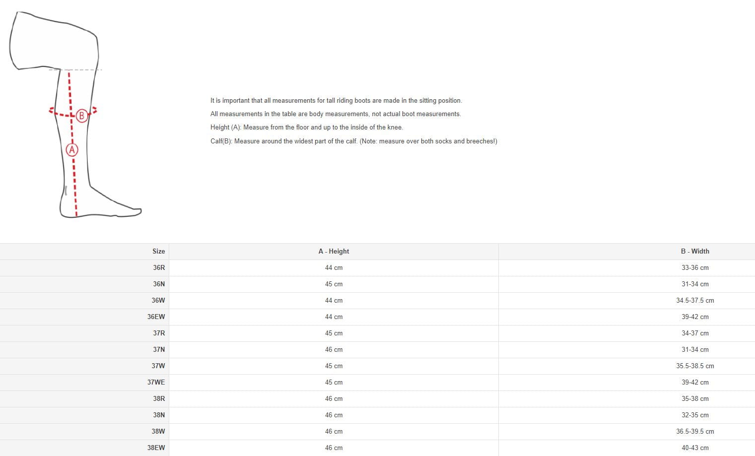 Dostępne są cztery szerokości łydek: wąska, regularna, szeroka, bardzo szeroka.