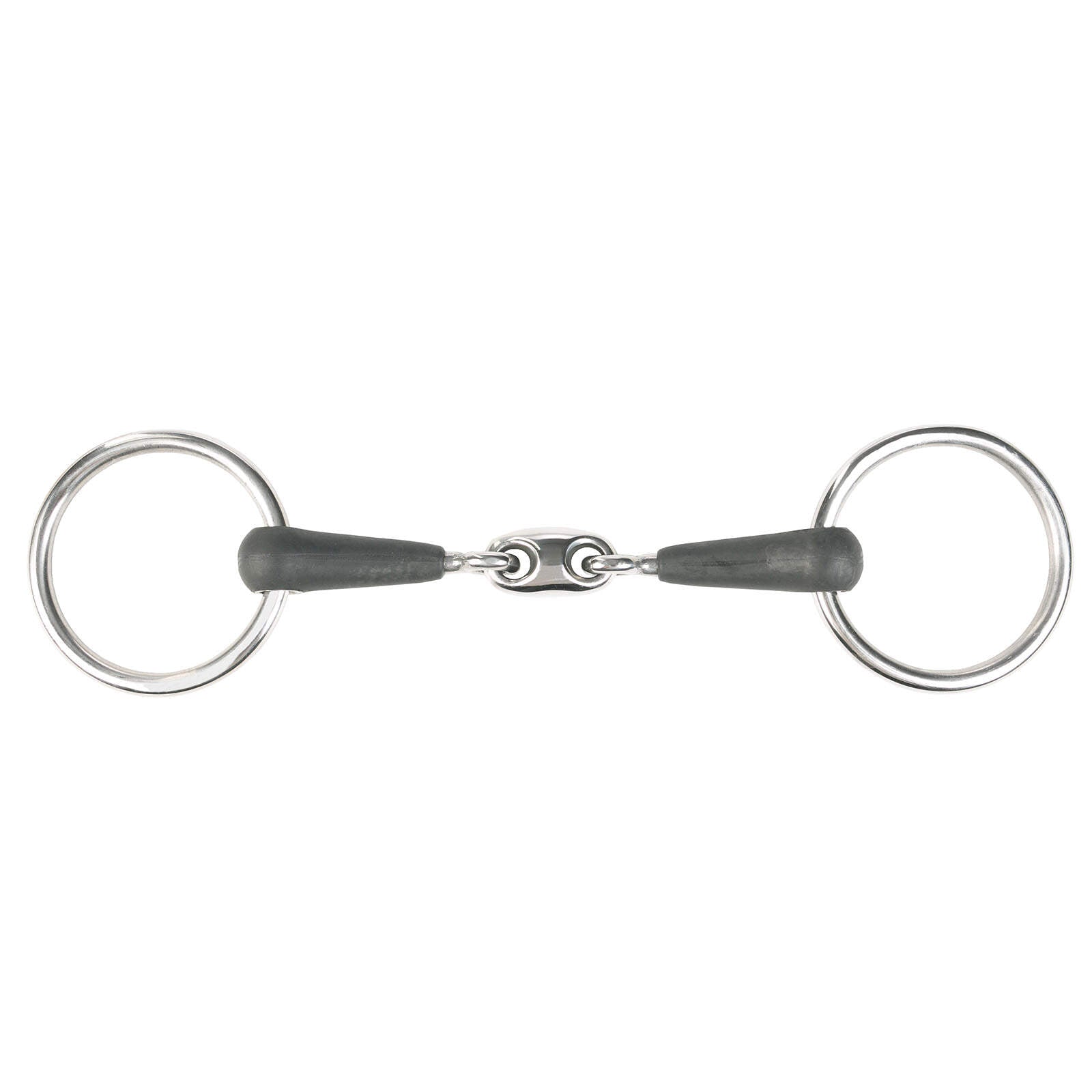 Podwójnie łamane wędzidło z ruchomymi kółkami to doskonały wybór da konia, który potrzebuje większego nacisku i kontroli. Można założyć ślinianki dla lepszej ochrony wrażliwej skóry warg. Wędzidła gumowe są wyjątkowo korzystne dla koni wrażliwych, ponieważ są bardziej elastyczne, a guma zachęca do przeżuwania i wydzielania śliny.