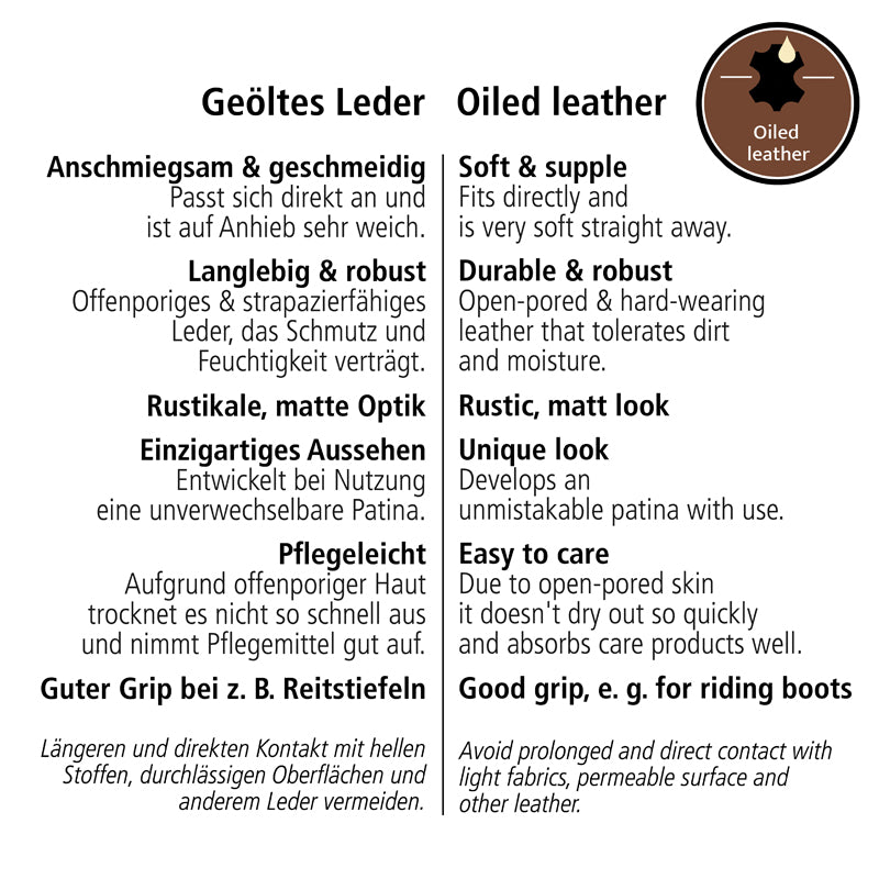 Ze względu na unikalny charakter skóry, pozostałości oleju mogą przenosić się na inne powierzchnie. Należy unikać bezpośredniego oraz długotrwałego kontaktu z jasnymi tkaninami, przepuszczalnymi powierzchniami i inną skórą, które mogłyby przypadkowo wchłonąć olej.