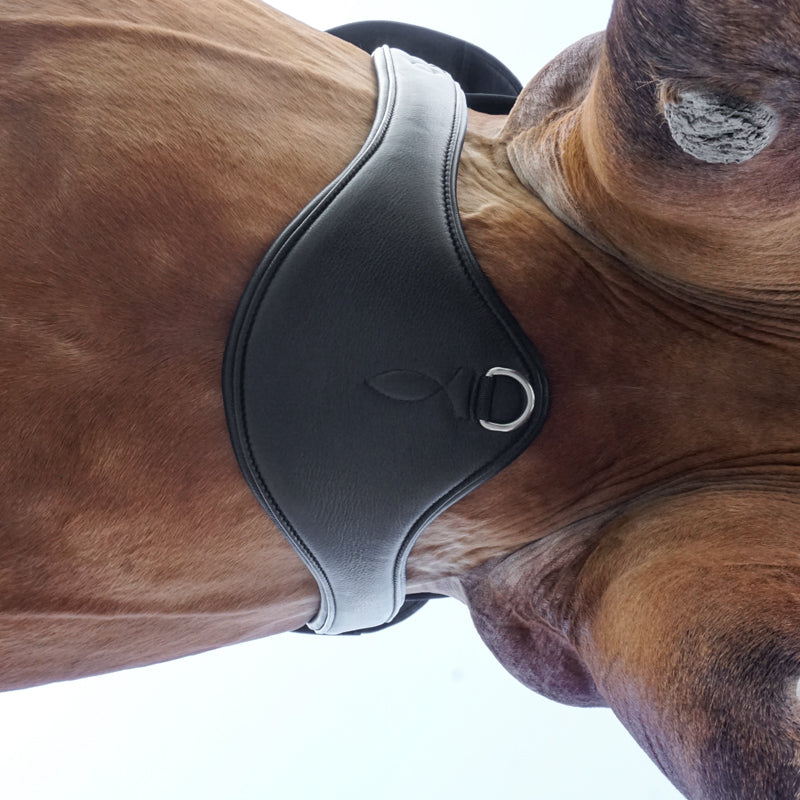 Popręg posiada 3 d-ringi które umożliwiają przypięcie pomocy jeździeckich.