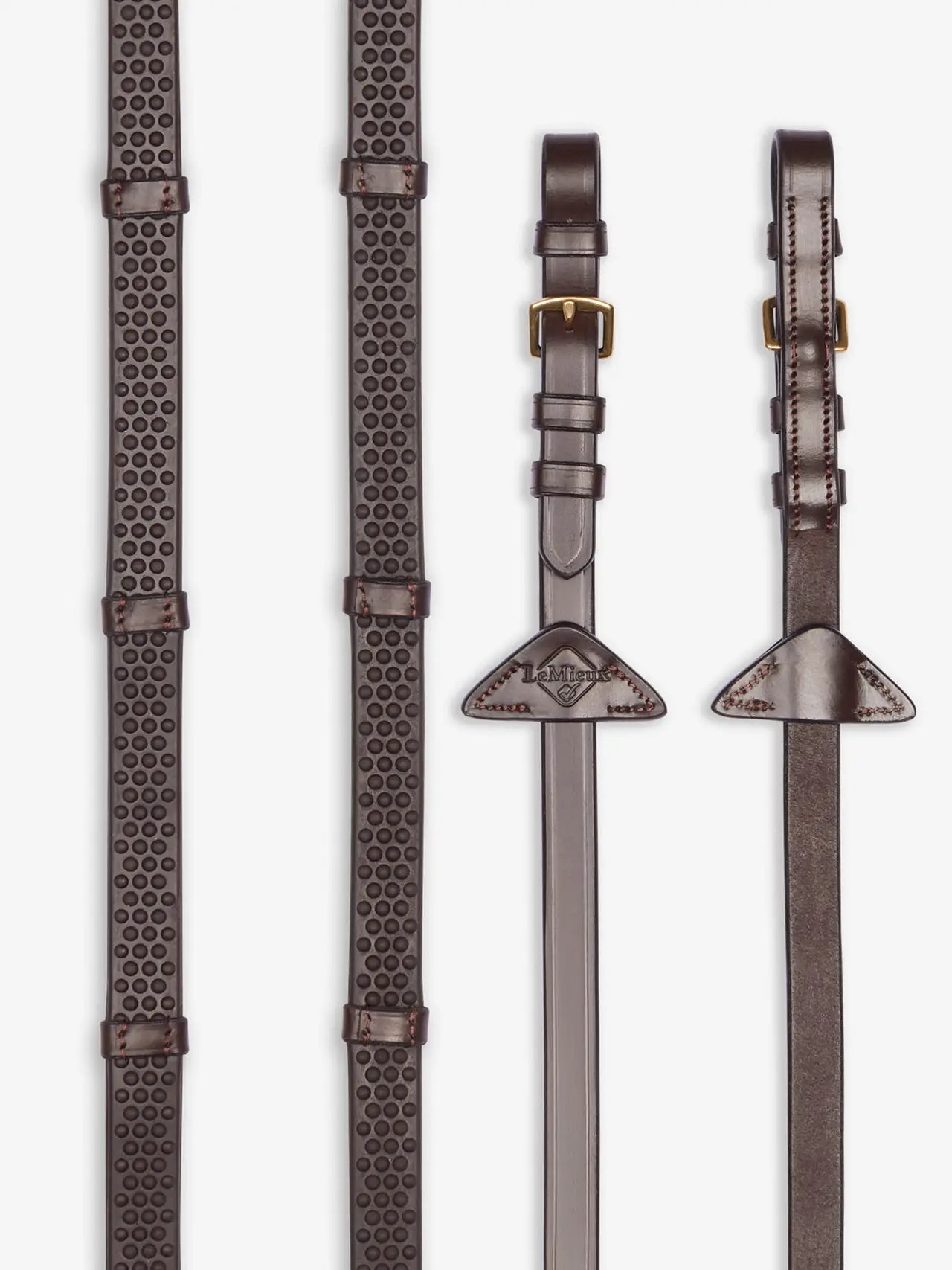 LeMieux wodze gumowe ze stoperami "Soft", Havana/złoty